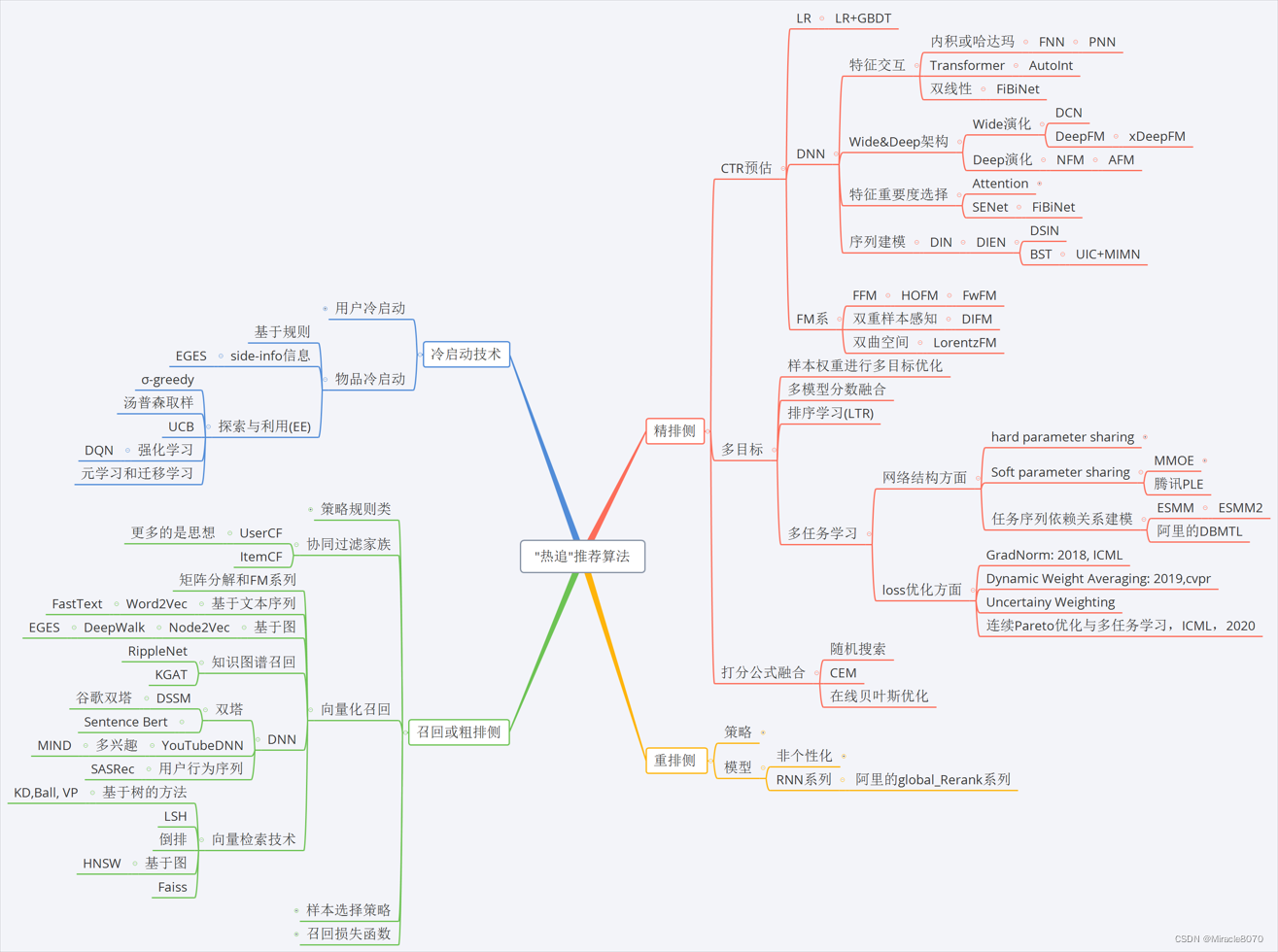 关于要整理的模型和技术,我这里按照自己的理解做了一个思维导图: