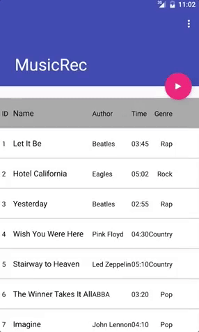 - As soon as the current activity is detected (or changed), the play list is reordered such that - top songs are genre correspoding to that activity.