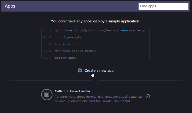 Go to Heroku and sign up for an account. Confirm your account and sign in.