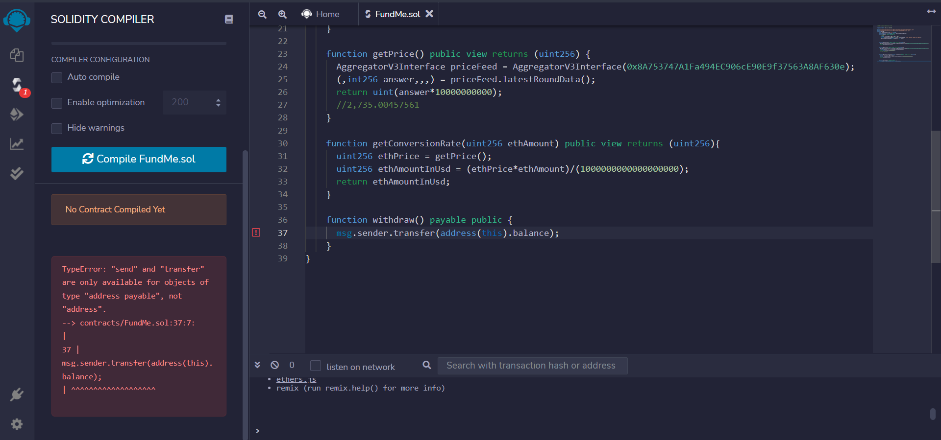 Lecture 3 : Not able to transfer funds, something with address payable #1221