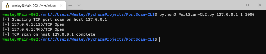 Or use the CLI version, which can be executed like so: python3 PortScan-CLI.py IP_ADDRESS START_PORT END_PORT -- using enviornment variables you can shorten this to whatever desired.