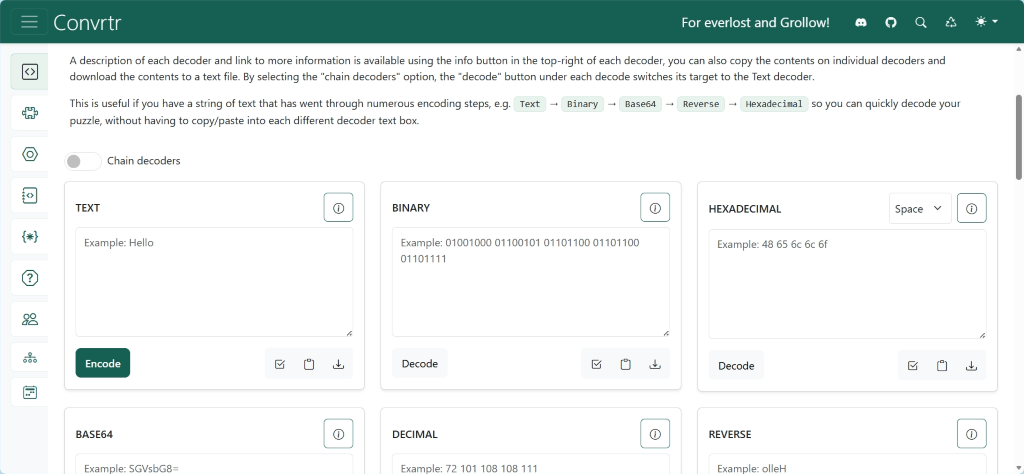 As the scripts multiplied, they were gathered into a compact microsite—part toolkit, part field terminal—designed for solvers who needed to work from anywhere. The concept took shape in the vacuum left by Everlost, a decoding tool that vanished from the web without warning. Its disappearance left a gap in the community’s infrastructure, and Convrtr stepped in with a familiar layout, early Bootstrap bones, and a growing library of converters that echoed the spirit of the tools that came before.