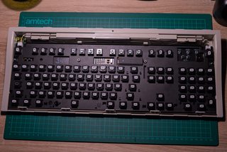 The PCB is built entirely with THT parts to keep a somewhat "vintage" look to it and it uses the fullsize 40-pin DIP package ATmega32A. The controller is placed in the exact same location as the one on the original PCB.