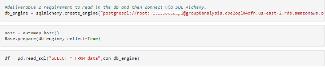 Using SQLAlchemy along with the connection link to the database allows the table previously created to be loaded.
