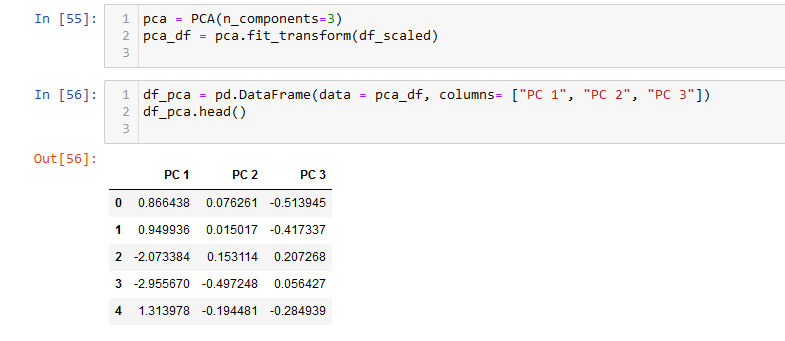 The original "df" and machine learning generated "df_pca" DataFrames were joined together.