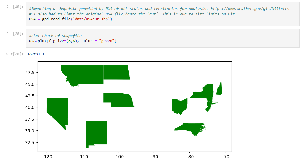 Using GeoPandas, confirmation was first done to verify that all of the records were within the U.S. and its territories.