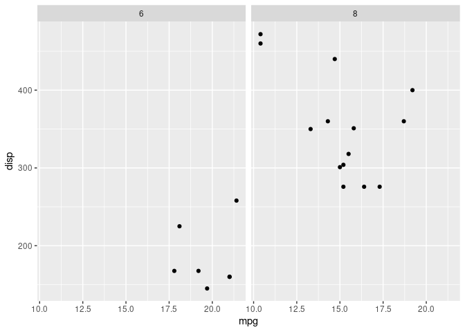 facet_wrap(~cyl, drop = TRUE)Compare with the result removing the category at the top-level call of the plot.