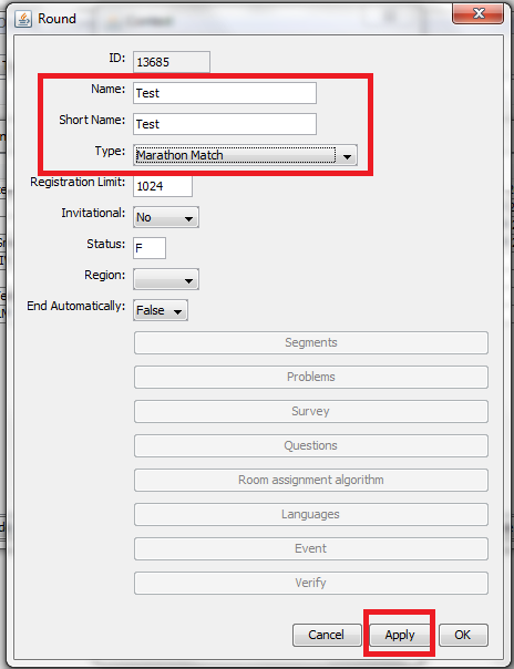 "Run contest" -> "Before contest" -> "Set Round Terms..."