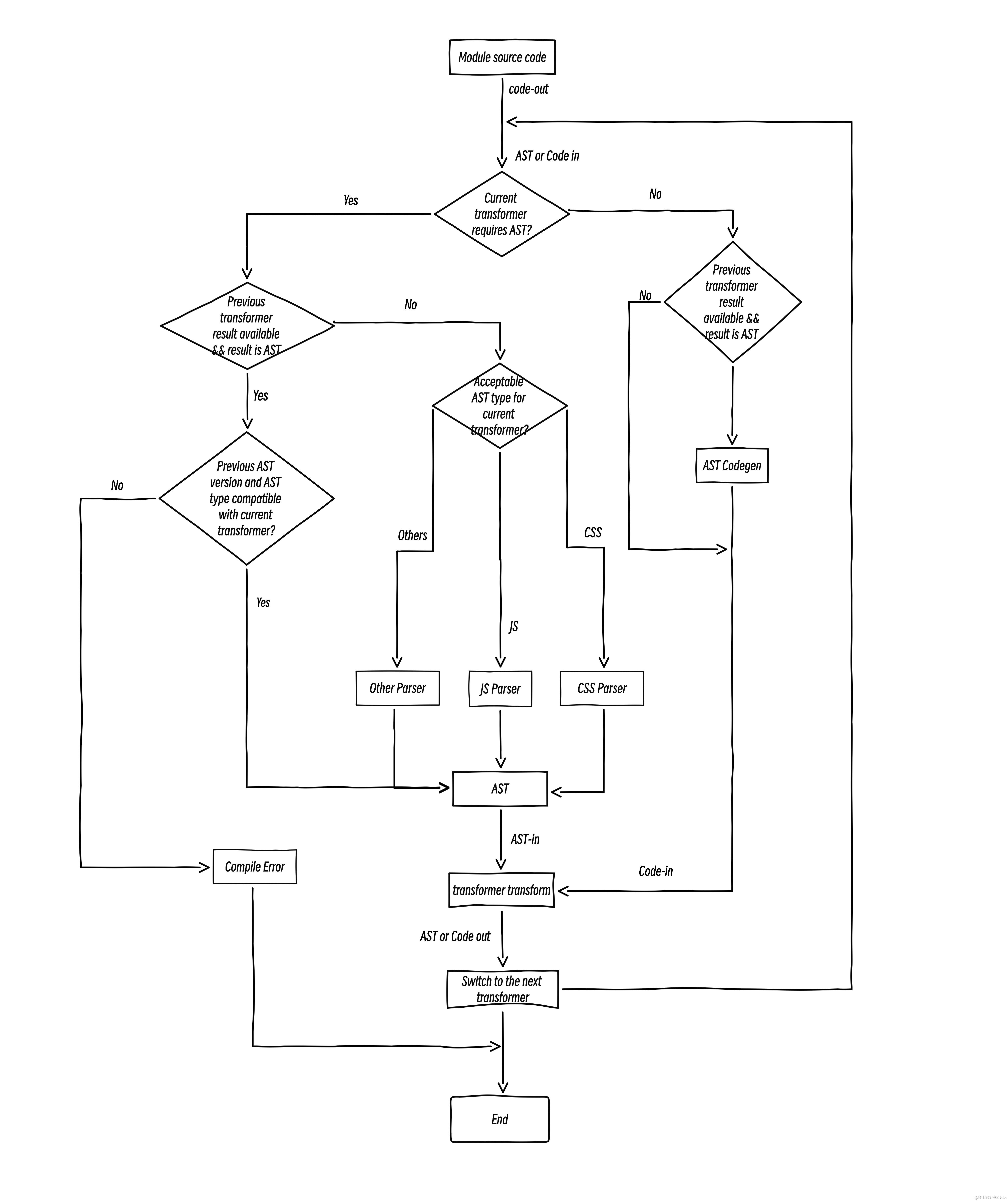 另一个对性能影响很大的设计就是如何在不同的模块转换之间复用AST,因为 parse 的开销通常非常巨大且常常成为性能的瓶颈,如果能尽可能的复用 AST 则可以大大的优化性能。我们看看各个工具是如何处理 AST的复用的。